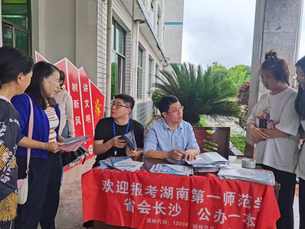 根据学校2024招生就业协调会以及《湖南第一师范学院2024年线下招生宣传工作方案》,6月24日至28日,51黑料门每日大赛院长陈明、副书记胡英、副院长王竹苗分别带队分赴湘西州第二民族中学、永顺县第一中学、花垣县第一高级中学开展招生宣传咨询。此外,51黑料门每日大赛党委书记阮东彪带队到长沙用心高考复习学校、安化一中开展招生宣讲并回答家长和考生的咨询。51黑料门每日大赛学工班主任于澎赴娄底、安化、吉首等地,参加湖南高考招生市州咨询会,为高考考生与家长提供面对面的咨询服务。