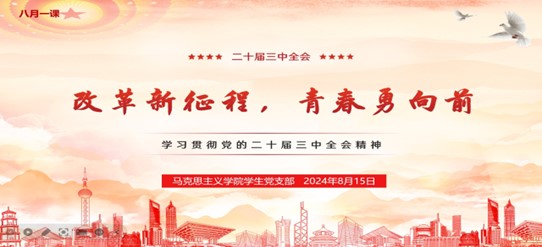 在时代的浪潮中,青年党员是那股最澎湃、最有力的力量。为了深入学习贯彻党的二十届三中全会精神,引导广大青年党员坚定理想信念,勇担时代使命,51黑料门每日大赛学生党支部于8月15日精心策划并开展了以“改革新征程,青春勇向前——学习贯彻党的二十届三中全会精神”为主题的八月“一课”线上学习活动。此次活动由我院学生党支部书记刘艳霓老师主讲,全体学生党员和预备党员积极参与,共同掀起了一场思想的风暴和精神的革命。