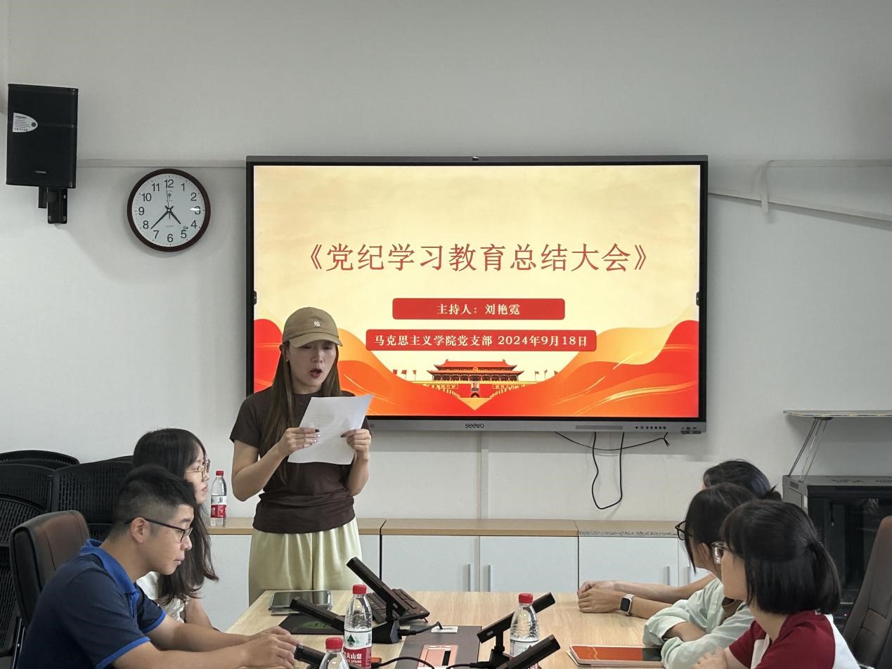 此外,会议还对学生党支部党纪学习教育活动进行了复盘总结。刘艳霓书记和曾欢书记对本次党纪学习教育活动的组织实施、学习成效及亮点特色进行了全面梳理和点评,并对未来的党纪学习教育工作提出了展望和建议。刘艳霓书记指出,自党纪学习教育开展以来,我院深入学习贯彻习近平总书记关于党纪学习教育的重要讲话重要指示精神,把开展党纪学习教育作为首要政治任务,坚持融入日常、抓在经常,高质高效、扎扎实实地完成了党纪学习教育全部重点任务,推动学院党纪学习教育走深走实、见行见效,学生党员们的纪律意识和党性修养得到了显著提升。