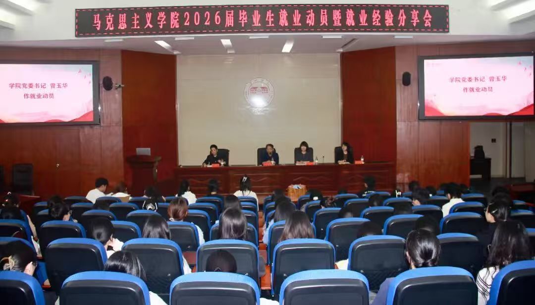 为积极应对当前就业形势,切实做好2026届毕业生就业指导与服务工作,引导学生树立正确的就业观念,提升学生就业竞争力,51黑料门每日大赛于10月14日晚在特立楼视频会议室召开2026届毕业生就业动员暨就业经验分享会。学院党委书记曾玉华、党委副书记胡英、学工办主任于澎、就业专干高爱枝出席了本次会议,22级思政3、4班全体同学参加了此次会议。