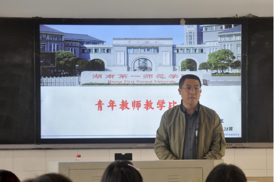 比赛由学院副院长王竹苗主持,评委组由副院长胡慧娥以及院督导组贺汉魂等六人组成。为确保比赛的规范性和有序性,比赛伊始,副院长王竹苗详细宣布了参赛人员名单、现场评委组成、比赛规则及流程。评委团由贺汉魂、向婷等六位教学督导构成。学院党委书记曾玉华亲临现场指导并发表讲话。他着重强调了青年教师提升教学能力的重要意义,对积极报名参赛的教师们予以表扬,并鼓励他们专注于教学工作,持续提升教学水平与能力。他的发言为此次比赛营造出庄重且热烈的氛围。