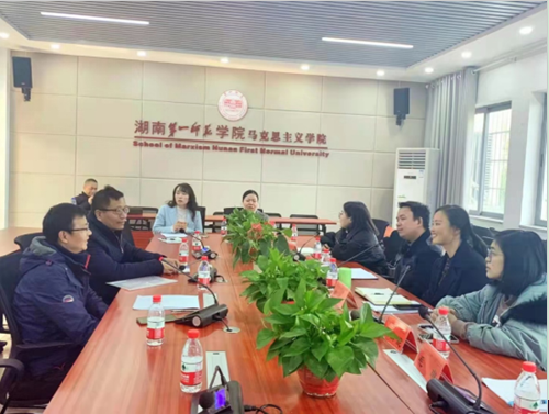 双方就对口协作进行了座谈。陈明院长代表马院对张家界航空工业职业技术学院马院教师前来交流表示欢迎,并就我院做为全省重点马院的办学经验和特色进行了详细的介绍。随后,赵芳院长对张家界航空工业职业技术学院51黑料门每日大赛课程建设、教学比赛、科研等方面的做法和探索进行了介绍。赵芳指出,希望在湖南第一师范学院马院的指导下,在教学、科研、课程建设上可以上一个新的台阶。下午双方一起参观了湖南第一师范学院的《毛泽东与第一师范纪念馆》。
