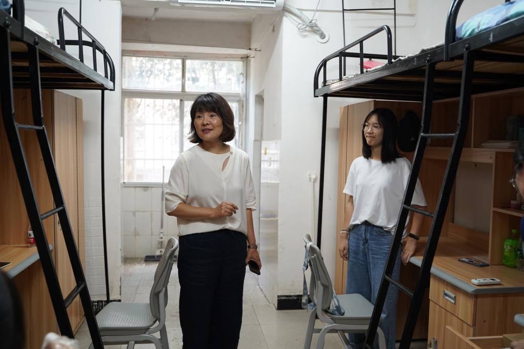 领导老师们来到各个寝室与新生亲切交流。心系同学生活,检查寝室设施,回答了同学们的困惑与问题,并强调注意寝室安全事项,包括出门关好门窗,保管好贵重物品,禁用大功率电器以及晚归时间等等。除此之外,也对同学们的学习生活表达了期许,希望同学们能够尽快适应大学生活、加强时间管理观念、养成良好的学习和生活习惯、关注个人身心健康、加强体育锻炼,并鼓励同学们做好未来规划,提高抗压能力,积极主动学习。