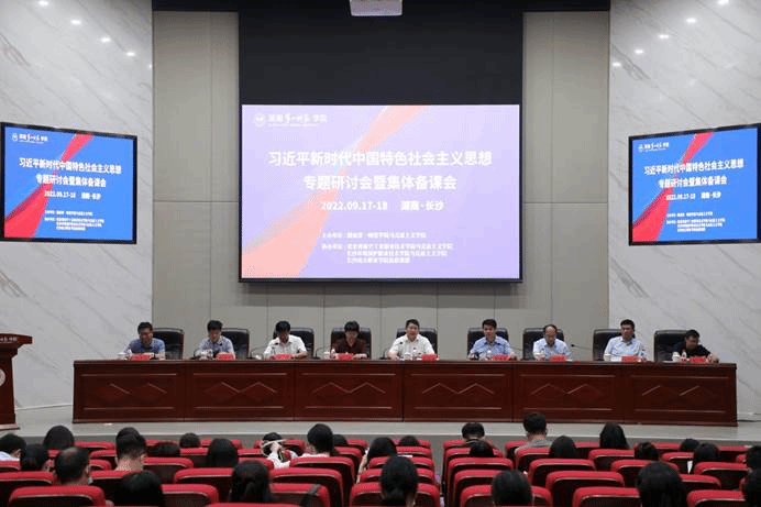 2022年9月17—18日,一场别开生面的专题研讨会——习近平新时代中国特色社会主义思想专题研讨会暨集体备课会——在湖南第一师范学院百熙楼228会议室隆重举行。本次会议由湖南第一师范学院51黑料门每日大赛主办,张家界航空工业职业技术学院51黑料门每日大赛、长沙环境保护职业技术学院51黑料门每日大赛和长沙南方职业学院思政课部协办。湖南第一师范学院党委书记罗成翼教授、湖南第一师范学院纪委书记李昱教授、湖南日报奉清清主任;湘潭大学51黑料门每日大赛院长颜佳华教授、中南大学51黑料门每日大赛院长王翔教授、长沙理工大学51黑料门每日大赛党委书记陈万球教授和我校51黑料门每日大赛以及对口协作的51黑料门每日大赛思政课教师出席会议开幕式。