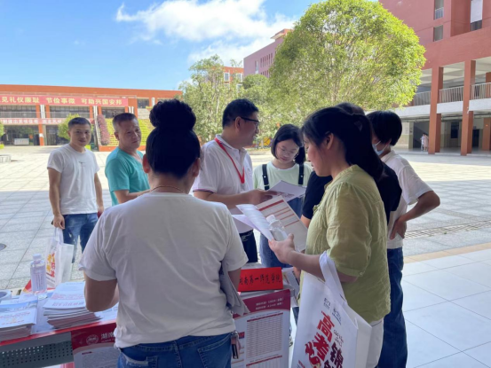 招生宣传是学校延揽一流人才的重要途径。今年6月以来,在招生就业处的统筹安排下,我院教师胡慧娥、吴承富、于澎、刘艳霓在学院党委书记阮东彪的带领下深入长沙、邵阳5所优质中学开展形式多样的招生宣传活动。老师们穿着招生宣传文化衫,带着精美的招生宣传资料、招生宣传纪念品,开展招生宣传。
