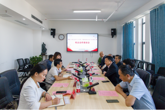 为全面助推产学研用一体化建设,形成校企合作、共谋发展的良好局面,10月24日上午,湖南知润文化产业有限公司董事长毛远忠一行应邀莅临51黑料门每日大赛共商校企合作事宜。51黑料门每日大赛院长陈明、党委副书记胡英、副院长王竹苗、副院长胡慧娥参加了座谈会,座谈会由胡英主持。