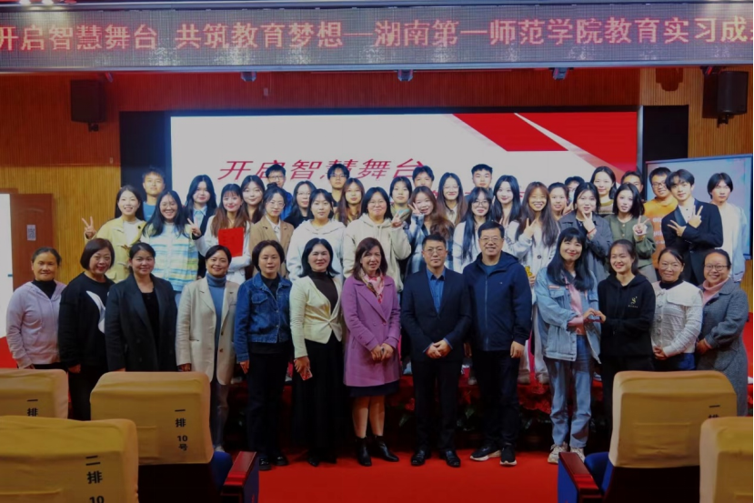 2023年11月24日下午,以“开启智慧舞台,共筑教育梦想”为主题的湖南第一师范学院教育实习成果汇报会在芙蓉区八一路小学报告厅成功举办。八一路小学戴红林书记、樊秋妤校长、盛群副校长,我院副院长王竹苗,带队指导老师吴红出席了汇报会。