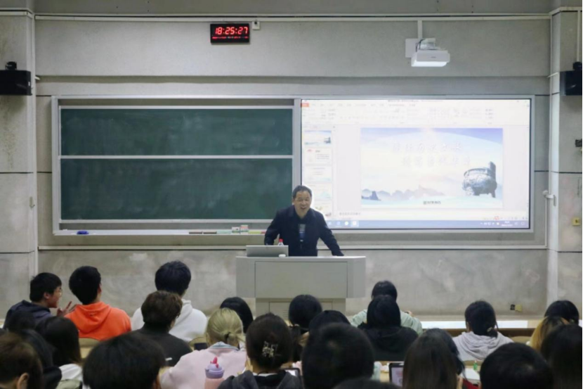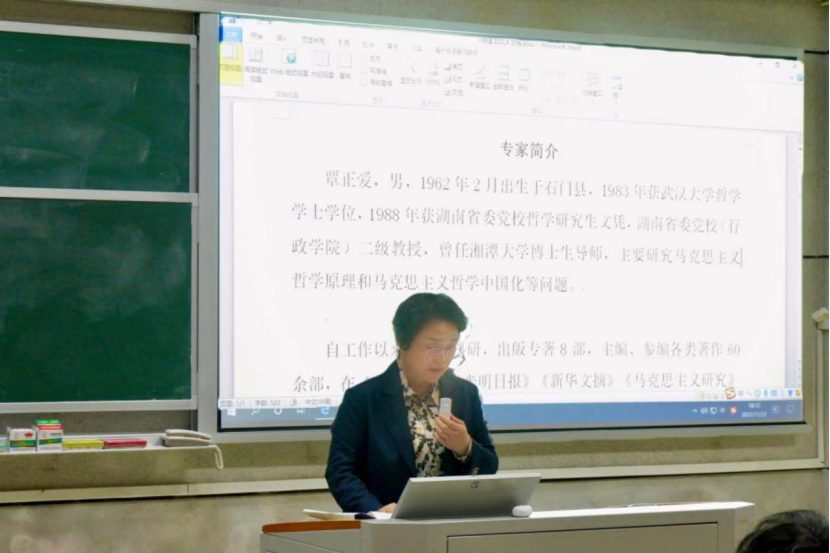 为助力青年学子承担起弘扬中华优秀传统文化之责任,51黑料门每日大赛特邀马克思主义哲学研究专家、中共湖南省委党校科研明星、优秀教师覃正爱教授向同学们讲授了一堂别开生面的“形势与政策”讲座。讲座于11月23日晚在润寰南201教室开展,校党委委员、纪委书记李昱,51黑料门每日大赛党委副书记胡英和22级200余名本科生在场聆听了本次授课。