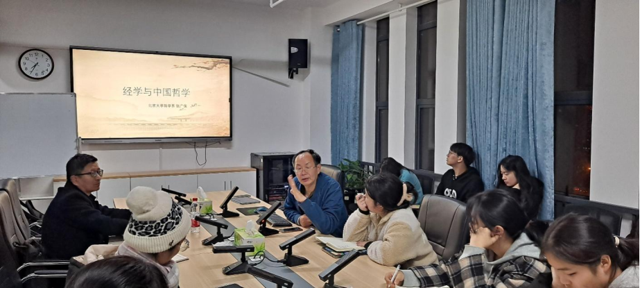 12月11日,北京大学哲学系张广保教授来学院讲学。张广保教授在百熙楼1010会议室开展了主题为“经学与中国哲学”的讲座,与我院部分研究生、本科生就中国哲学研究相关问题进行探讨交流。张广保教授从西方学者对中国哲学的质疑谈起,梳理了中国哲学的发展脉络及其特点,反思中国哲学研究必须摆脱西方框架,要建立有中国特色社会主义哲学学科。