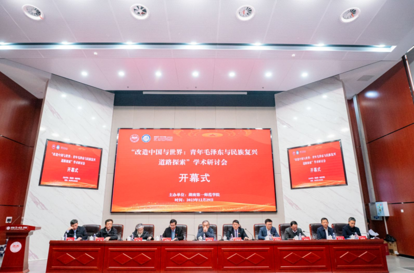 12月28-29日,由湖南第一师范学院主办的“改造中国与世界:青年毛泽东与民族复兴道路探索”学术研讨会在长沙顺利举行。来自北京大学、中国社会科学院、武汉大学、南京航空航天大学、华南师范大学、中南大学、湖南大学、湖南师范大学、湘潭大学等200余位专家学者出席研讨会。
