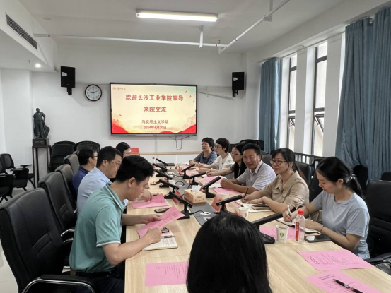 我院院长陈明对长沙工业学院同行们表示热烈欢迎,介绍了习近平总书记考察我校的情况和我院发展的基本情况。长沙工业学院思政课教学组组长谭必翰介绍了长沙工业学院的基本情况,说明了此行调研目的。