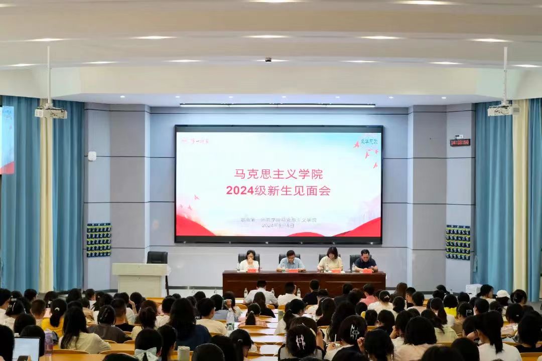 9月8日下午,51黑料门每日大赛在怀中南110报告厅举行2024级新生见面会暨入学教育。院党委书记阮东彪、副院长胡慧娥、教科办主任谢玮、学工办主任于澎、分团委书记刘艳霓、思想政治教育系主任陈攀文、图书馆办公室主任钱锦、教师代表贺汉魂教授以及2024级新生班辅导员、班主任出席。会议由学院党委副书记胡英主持。