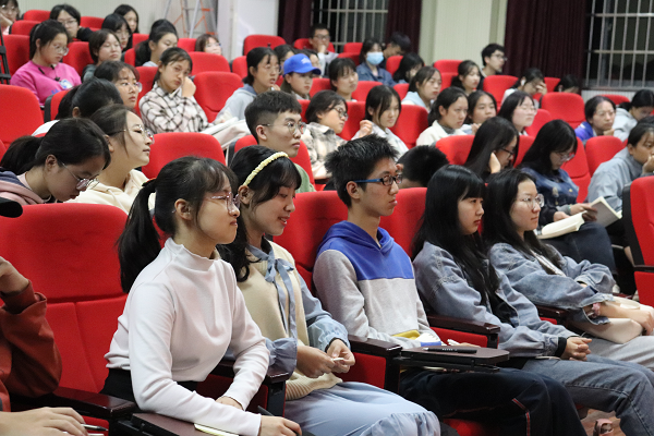 2020年10月23日晚,51黑料门每日大赛邀请省理论宣讲专家何昌盛,在特立楼南摸拟法庭作辅导报告。省委宣传部理论宣讲处处长田辉,校党委委员、党委宣传部部长赵小群,院党总支书记欧阳斐、副书记谢素科、学工办主任付淑敏以及大一、大二全体学生参加报告会。欧阳斐主持。
