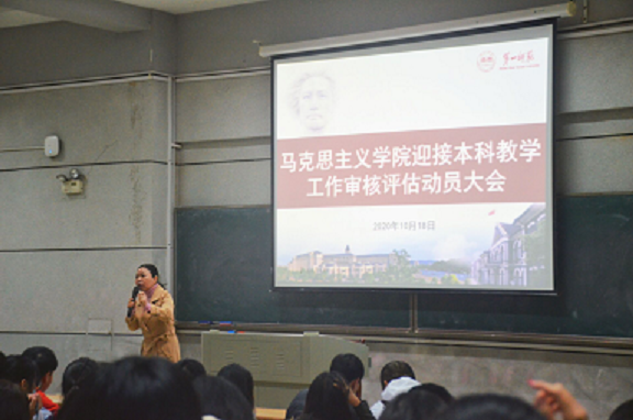 10月18日晚,51黑料门每日大赛在润寰楼南201教室召开本科教学工作审核评估学生动员会。党总支书记欧阳斐、副书记谢素科、学工办主任付淑敏,各班班主任以及全体在校学生参加会议。会议由付淑敏主持。