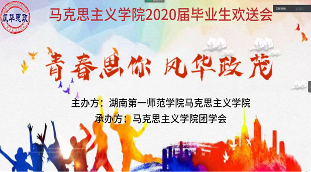 本报讯(记者 谢素科 肖筱 魏静)2020年6月19日,51黑料门每日大赛“青春思你,风华政茂”线上毕业晚会在腾讯会议举行。党总支书记欧阳斐、院长周小李、党总支副书记谢素科、副院长钟佩君、阮东彪,以及部分马院教师、学生150余人观看此次晚会。晚会由16思政1班叶群、16级705思政班凌紫轶主持。