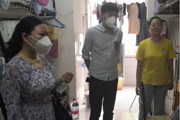 周小李、欧阳斐等人逐一走访了毕业生宿舍,代表学院致以问候,并与毕业生亲切交谈,了解他们返校后的学习生活情况、就业情况和心理状态。检查了宿舍的卫生、安全等方面状况,重点检查了疫情防控措施落实情况和学生对学校疫情防控知识的掌握情况,并送去了口罩、消毒液等防疫物资。