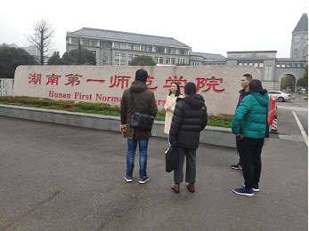 讲解员向拉萨师专的老师们介绍了我们湖南一师的历史渊源以及千年学府、百年师范美誉的由来,分析了校门的深刻意义:长12.26米与毛主席生日12月26日相吻合;高183cm与主席的身高相吻合;底座105cm,是新中国成立1949年和建立社会主义1956年的年份之和;底座宽度80cm,代表着中国共产党党史上的两次重要会议,遵义会议以及中共七大。讲解员还简略地介绍了毛泽东名字的由来,以及学校的润寰楼、怀中楼、玉衡楼、特立楼等名字的渊源。
