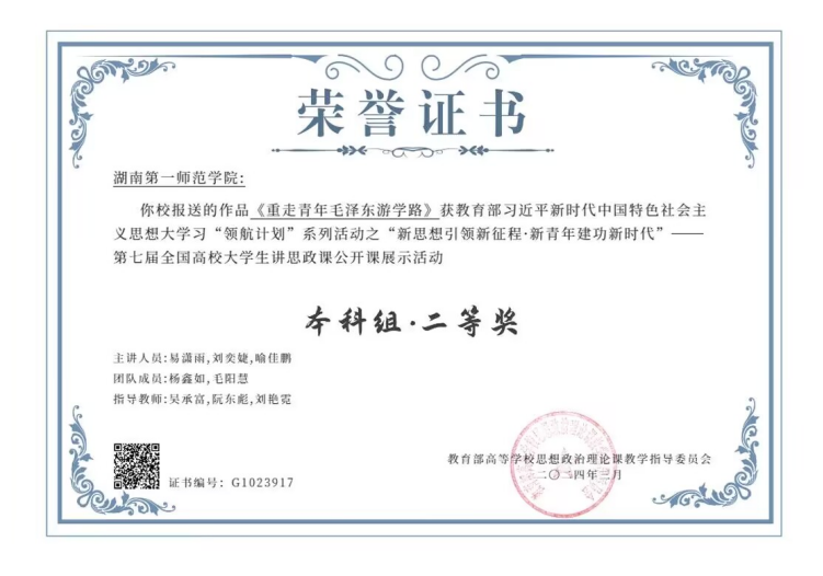 近日,第七届全国高校大学生讲思政课公开课展示活动和全国高校大学生微电影展示活动评选结果揭晓,我院推送的作品《重走青年毛泽东游学路》荣获二等奖,《鲲鹏击浪从兹始》荣获三等奖。