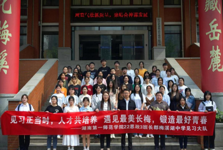 4月15日,为亲身体会现代化中学建设的教学环境和校园文化,深度了解中学一线教学的教育教学活动,22思政3班51名见习生在指导教师匡老师的带领下,于长沙市长郡梅溪湖中学展开见习活动。