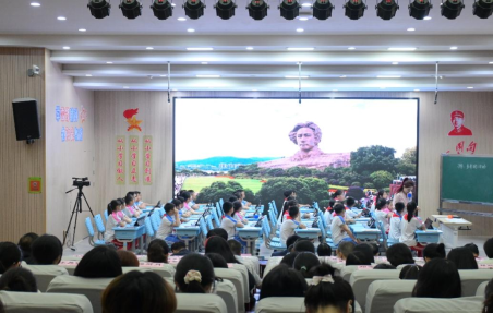 在见习临近尾声之时,全体师生共同观看学校自制红色电影《庚伢子》,在光影中探寻思政教育与影视美育的融合路径。随后,李思敏老师以《多彩的活动》作文课为例,展示了“AI+教育”智慧课堂的创新实践,体验到了“智能作文批改系统”、“虚拟写作场景”等技术手段,呈现了未来课堂的无限可能。