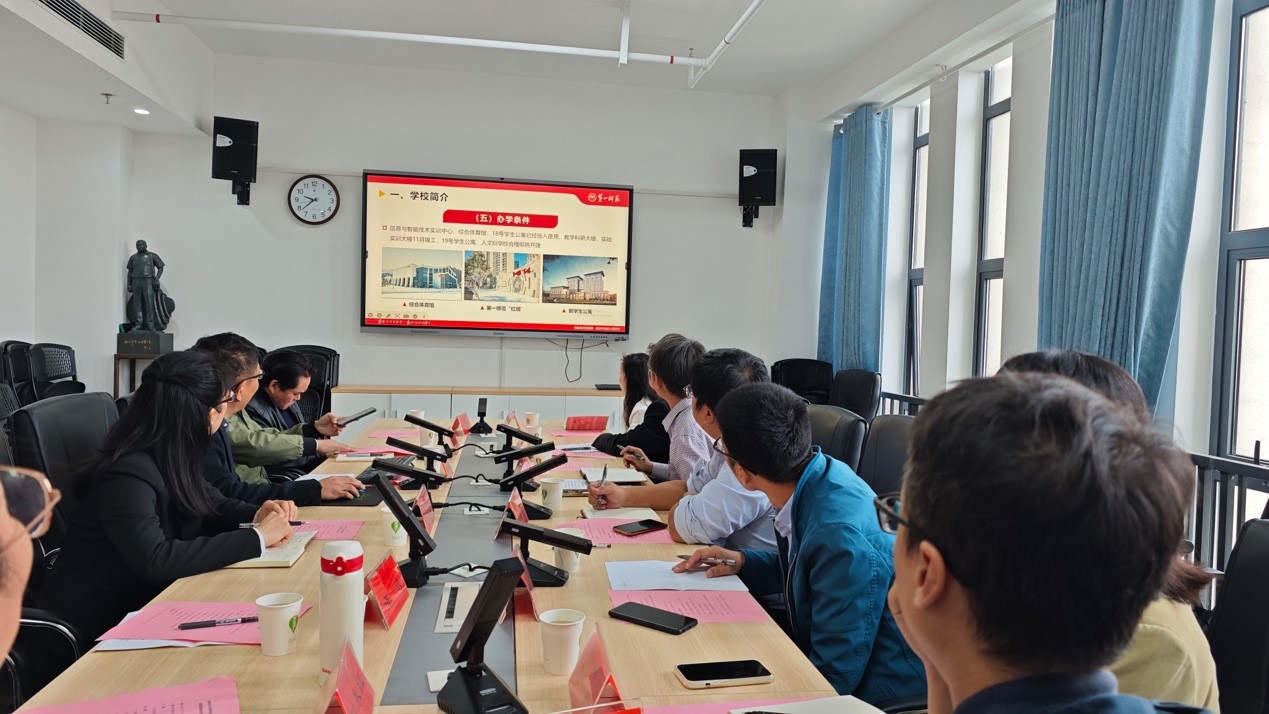 阮东彪向湖州学院同行介绍了我校悠久的办学历史和学校特色,重点谈及我校自第二次党代会以来取得的主要工作成效,并结合我院发展的基本概况,分享了党建业务互融互促等方面的育人特色,以红色场馆、校史、游学、平台等培育新时代大先生大品性、大情怀、大心胸、大境界的工作格局,以“三聚焦三抓实”切实提高人才培养质量的具体做法等。