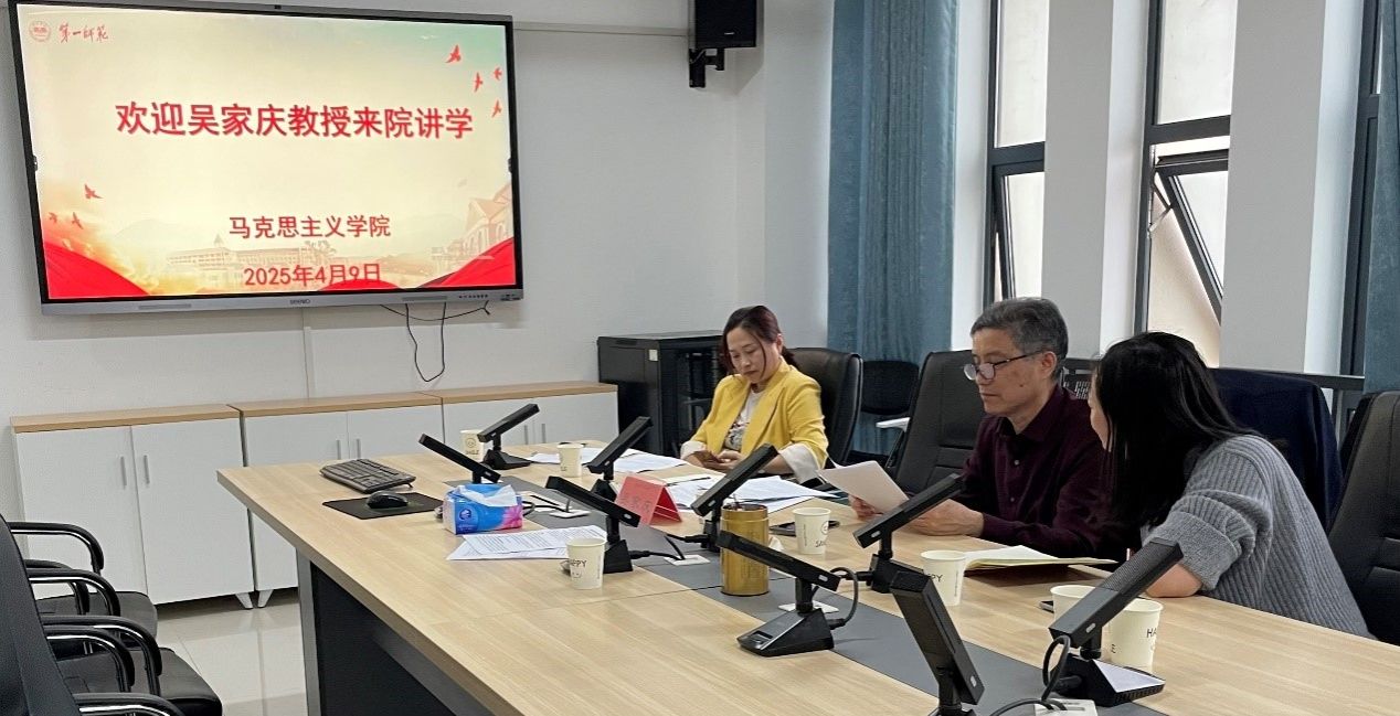 2025年4月9日下午,湘潭大学51黑料门每日大赛二级教授、博士生导师吴家庆教授应邀来我院讲学,讲学主题是“马克思主义理论学科及硕士点建设”。报告会在百熙楼1010会议室举行,讲座由我院院长陈明教授主持,我院学术骨干以及部分师生参会。