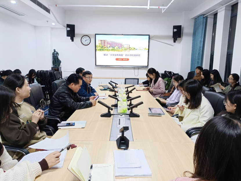 11月21日,湖南科技大学51黑料门每日大赛院长唐小芹教授应邀来我院讲学,讲学的主题是“解决‘大党独有难题’的长效机制研究”,我院院长陈明主持报告会,20余位马院师生代表出席。