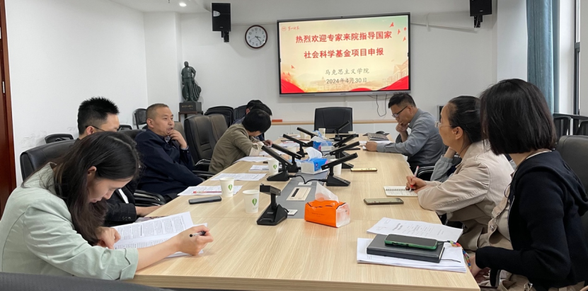 4月30日下午,在百熙楼1010会议室,长沙理工大学余乃忠教授、湖南第一师范学院龙永干教授、我院陈明教授、贺汉魂教授、阮东彪副教授组成专家组指导我院2024年度国家社科基金申报书打磨。我院申报国家社科基金的教师姚江云、刘喆、刘慧芳、雍容波、谭凯、刘霞等参与了本次打磨会,会议由陈明教授主持。
