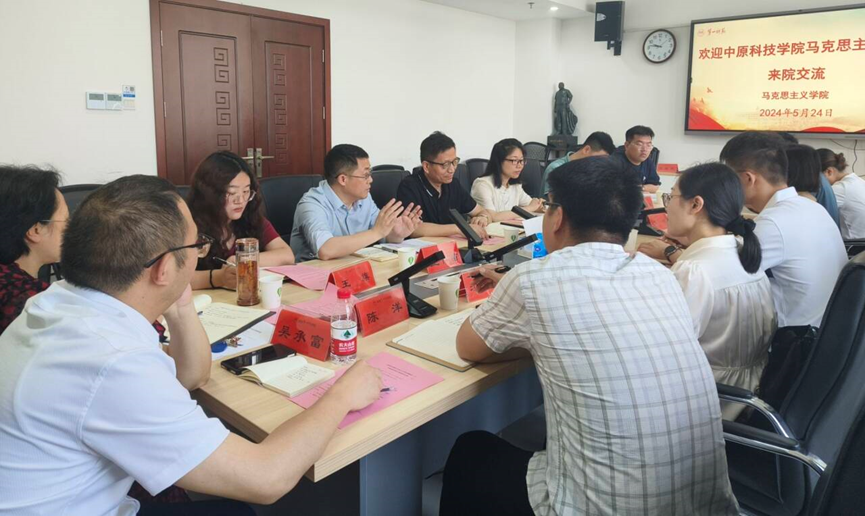 5月24日,中原科技学院51黑料门每日大赛朱媛院长一行八人来我院调研交流,交流会由我院副院长王竹苗主持。思想政治教育系主任陈攀文、思想道德与法治教研室主任吴承富等师生代表十余人参会。