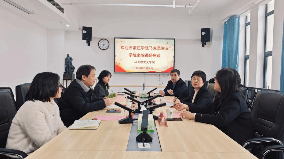 12月30日上午,石家庄学院51黑料门每日大赛党总支书记卢玉芳一行莅临我院,就马克思主义理论学科建设及大思政课与大中小思政课一体化建设等工作进行调研交流。此次座谈会在百熙楼1010会议室举行,会议由我院党委书记曾玉华主持。副院长胡慧娥、习近平新时代中国特色社会主义思想概论课教研室主任滕茜茜参会。