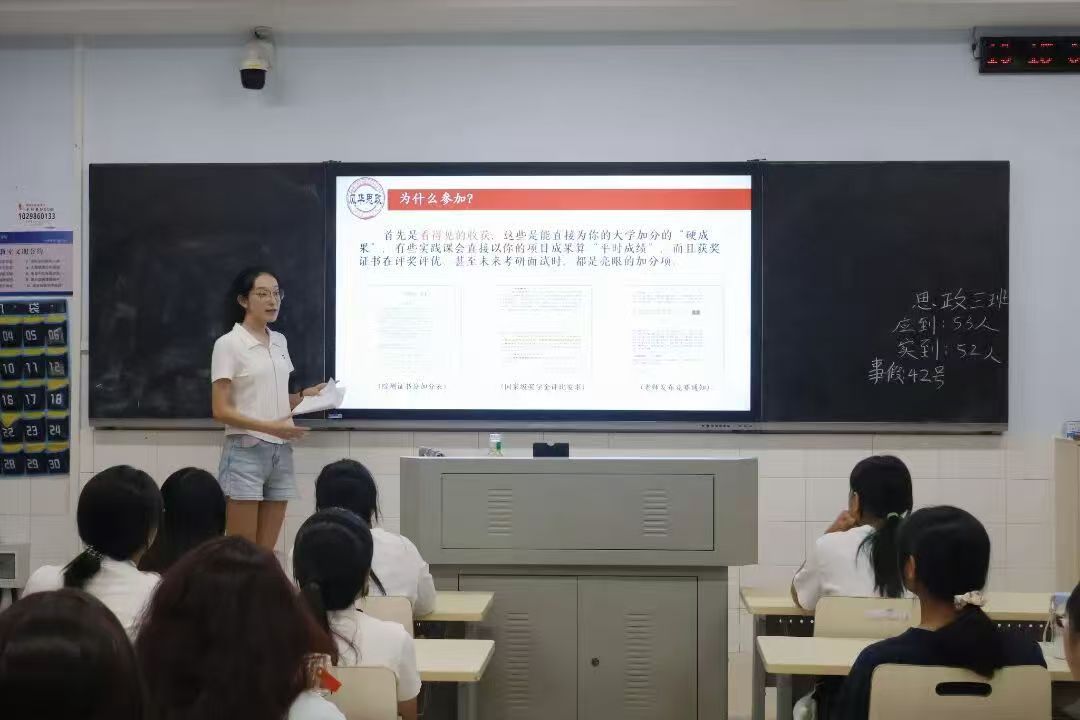 围绕“如何通过实践提升能力”,23级思政4班刘陆宇、杨惠如结合亲身经历,为新生梳理不同阶段的实践方向:大一时可参与 “校园文化节”“理论宣讲”等基础活动,大二、大三可冲刺师范生技能大赛、“挑战杯”“大学生讲思政课” 等高水平赛事。“每一次‘折腾’都是成长的复盘,每一次参与都是被看见的机会。”刘陆宇鼓励新生主动尝试,杨惠如则补充实践建议:“提前做好心理准备,明确自身定位;组队时注重成员分工,找对指导老师能少走很多弯路。”
