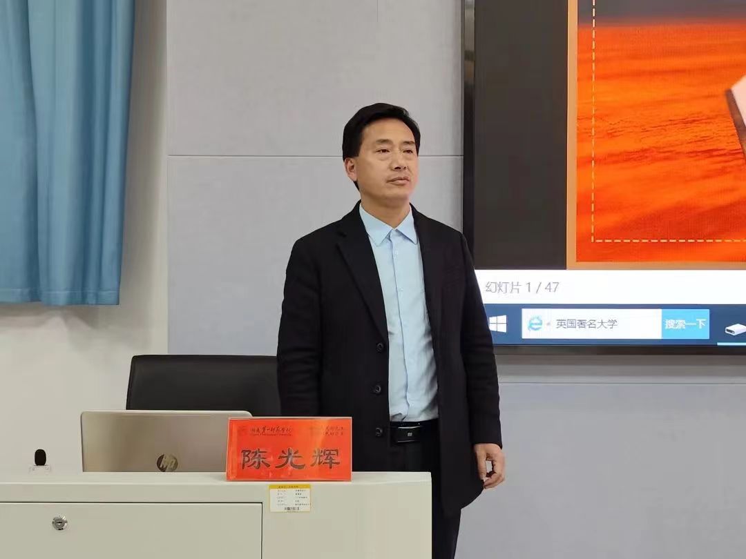 3月30日晚,我院特邀湖南师大附中凌云中学党支部书记陈光辉在玉衡楼101教室为我院学生作主题为“担当育人使命,不负时代荣光”的“思行先锋”论坛讲座。我院党委副书记胡英、学工办副主任刘艳霓以及全体2022级同学到场聆听。