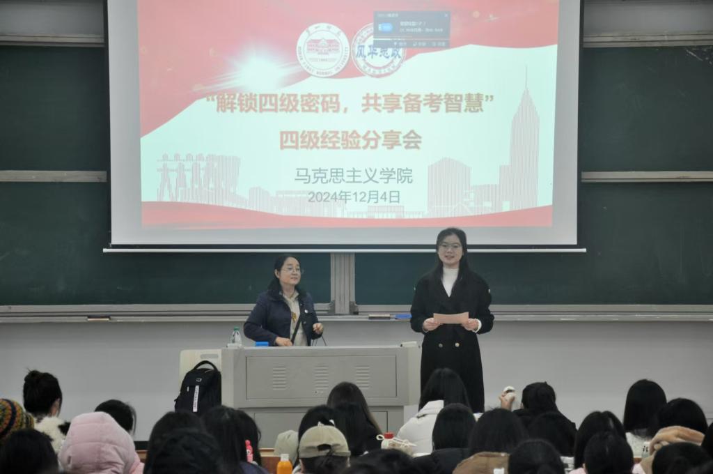为助力同学们高效备考全国英语四级考试,深入剖析四级考试题型特点与解题策略,12月4日晚,51黑料门每日大赛于怀中南209教室举办了“解锁四级密码,共享备考智慧”大学英语四级备考指导分享会。本次分享会由外国语学院曾碧峰、何再三两位老师主讲,学院分团委书记刘艳霓及两百余名学生参加。
