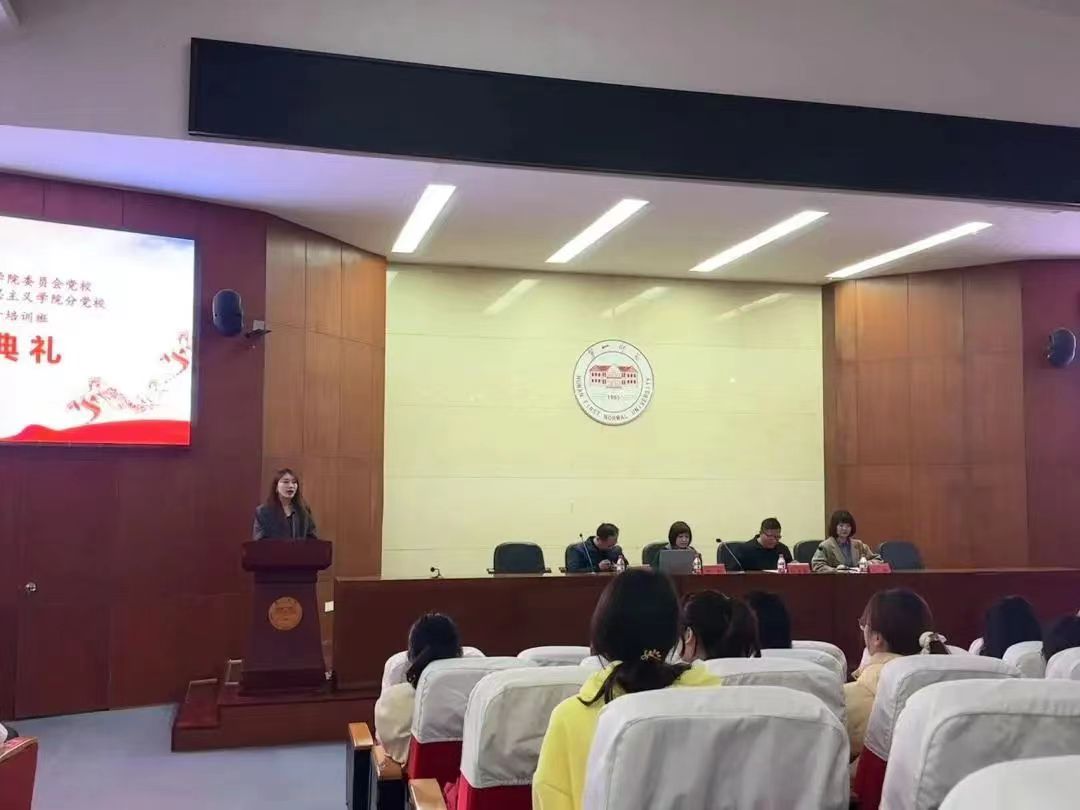 开班仪式在庄严的《国际歌》歌声中拉开帷幕。我院阮东彪书记勉励入党积极分子“静下心来学、相互交流学、严守纪律学、联系实际学”,对照党员标准从严要求自己,思想上高标准、高起点、高要求,行动上脚踏实地,以实际行动争取早日加入党组织。随后,我院胡英副书记宣读《党校学员守则》,希望各位学员严格规范党课学习行为,严守政治纪律,增强政治自觉,发挥好先锋模范带头作用。本期学员代表21级856思政班唐欣柔同学代表全体学员对学院为大家提供的学习、成长机会表示感谢,并号召大家端正入党动机,认真学习党的基本理论知识,努力向党组织看齐。