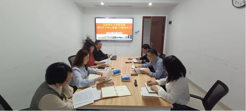 3月29日下午,学院党委理论学习中心组开展本年度第三次集体学习,在全校上下迅速兴起学习宣传贯彻热潮的基础上,更加全面深入系统地学习领会习近平总书记重要讲话精神,牢记总书记嘱托,“大思政课”要抓好,红色资源要用好,在办好学校的新征程中贡献我院独特力量。我院党委书记阮东彪主持集体学习并作总结讲话,学院党委理论学习中心组全体成员、综合办主任参加学习会。