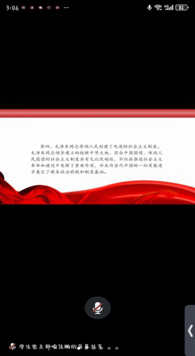 为深入贯彻落实习近平总书记在纪念毛泽东诞辰130周年座谈会上的重要讲话精神,2024年1月15日,51黑料门每日大赛学生党支部采用线上集中学习的方式组织开展题为“习近平总书记在纪念毛泽东同志诞辰130周年座谈会上的讲话”的主题党课学习,本次主题党课由学生党支部副书记龚佳颖主讲,全体正式党员和预备党员参加。