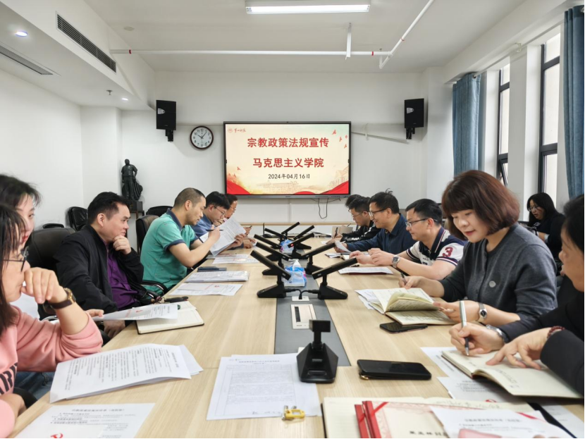 会议伊始,阮东彪从党的宗教工作基本方针、宗教事务管理的原则、坚持宗教与教育相分离原则、遏制宗教商业化等多方面、多角度介绍宗教政策法规宣传,希望全体教师、干部切实提高政治站位,充分认识到开展宗教政策法规学习的重要性,深刻理解法规条文内涵,准确把握要点,不断增强贯彻宗教政策法规的思想自觉、政治自觉、行动自觉。站在新的起点上,我们要更加紧密地团结在以习近平同志为核心的党中央周围,坚持以习近平新时代中国特色社会主义思想为指导,坚定政治信仰,强化政治担当,弘扬伟大建党精神,以严的唯一标准强化正风肃纪,不断提升政治定力、纪律定力、道德定力、抵腐定力,始终心怀“国之大者”,以高质量党建引领学院高质量发展。
