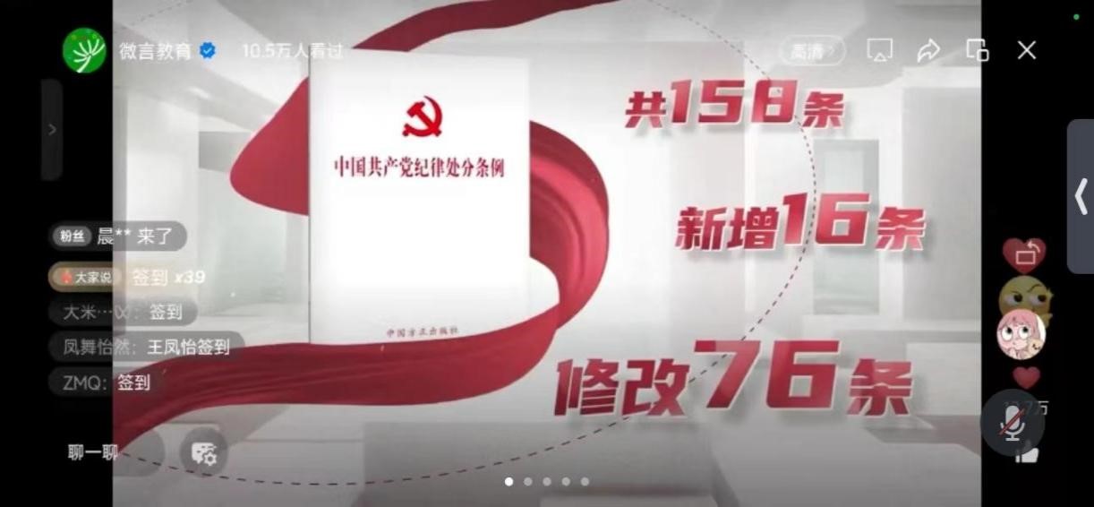 为进一步推进党纪学习教育走深走实,7月3日,我院学生党支部组织全体学生党员及预备党员集体观看线上微党课——《<中国共产党纪律处分条例>解读》。