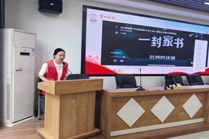 本次宣讲聚焦“信仰的力量”与“真理的味道”两大主题。宣讲员以抗日英雄赵一曼的革命事迹为主线,通过“誓志为人不为家”“白山黑水除敌寇”的壮烈篇章,再现赵一曼在狱中受尽酷刑仍坚贞不屈的英勇形象,深深打动了在场的每一位听众。“真理的味道”则聚焦陈望道翻译《共产党宣言》的经典故事,在讲述时宣讲员以“蘸着墨汁吃粽子”的细节切入,重现1920年早春,陈望道在浙江义乌柴房废寝忘食翻译时,误将墨汁作红糖蘸食却浑然不觉的场景。这一“真理的味道非常甜”的生动隐喻,不仅勾勒出早期共产主义者追求真理的纯粹热忱,更揭示马克思主义真理之光照亮中国道路的历史必然性。从赵一曼遗书的泪痕到陈望道砚台的墨香,这场跨越时空的对话,不仅是对红色记忆的传承,更是新时代新征程上对初心使命的庄严叩问。