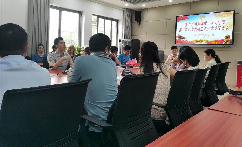 5月13日,院党总支在润寰楼北栋205会议室召开党员大会,选举中国共产党湖南第一师范学院第二次代表大会正式代表。大会由欧阳斐主持。