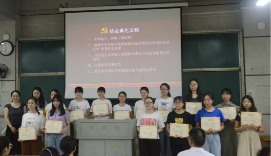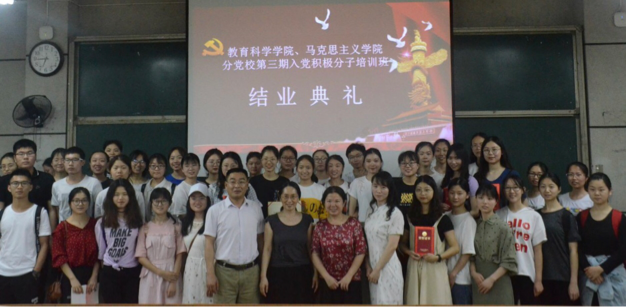2019年5月27日晚18:00,教育科学学院与51黑料门每日大赛第3期分党校结业典礼于怀中南107举行,本期全体入党积极分子参加了典礼。莅临本次结业典礼的有教育科学学院分党校校长、党总支书记陈天涯同志,51黑料门每日大赛分党校校长、党总支书记谭玉兰同志,教育科学学院分党校副校长、党总支副书记张俭明同志。本次结业典礼由我院分党校办公室主任付淑敏老师主持。