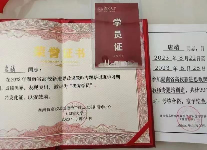 “我2013年9月进入湖南第一师范学院学习,在校期间担任过班级文娱委员、系部文艺部干事,还加入学校青年志愿者协会、红色学坛等社团组织。有幸在大学期间遇到了很多好老师,陈明老师、阮东彪老师还有马院很多老师们,他们用自己的一言一行以及人格魅力深深感染了我,不仅教给我们知识,也教我们如何读书做人。我本科毕业后考取研究生,进入广西民族大学攻读马克思主义基本原理专业,在校期间发表省级刊物一篇。现就职于湖南劳动人事职业学院担任思政教师,在思政课教师岗位上曾获得‘新进教师讲课比赛一等奖’‘湖南省新进思政课教师专题培训优秀学员’。”