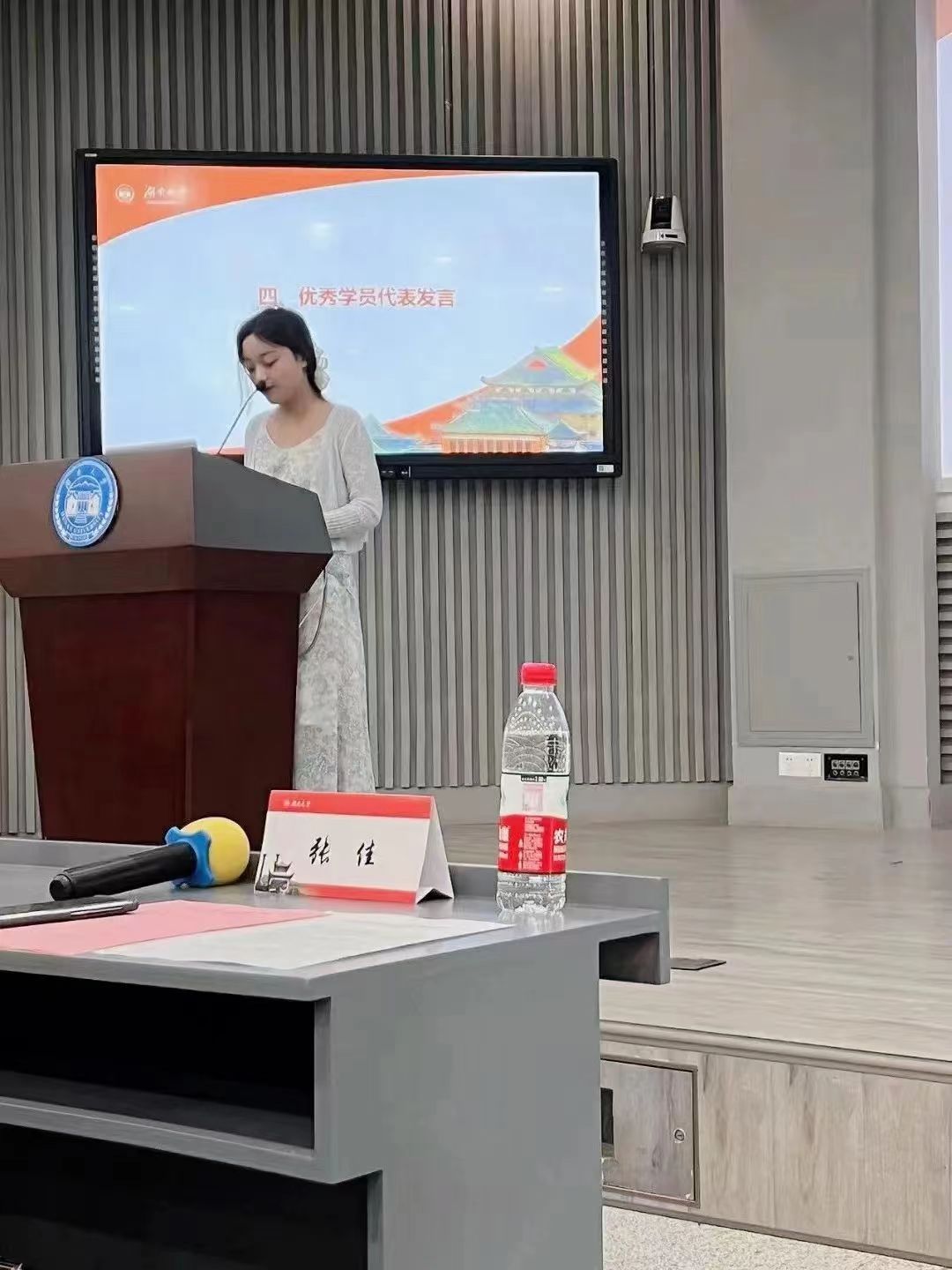 “‘天行健,君子以自强不息,地势坤,君子以厚德载物’。学姐想对学弟学妹们说,首先要充分利用在校的每一分每一秒去学习去读书。大学阶段可以利用的时间很多,制定好自己的学习目标和规划,可以是长期目标,如考研考公考编,也可以是短期目标,比如读一本书、完成一次考试,脚踏实地一步一个脚印。其次要培养自己的兴趣爱好。兴趣是最好的老师,也是丰富充实我们大学生活的重要途径,在这个过程中也能交到很多志同道合的朋友。最后要培养工作能力和人际交往能力。未来大家都要步入社会,在校期间要尽力帮助学院、老师和同学做力所能及的工作,培养自己的服务意识。赠人玫瑰,手有余香。不要害怕出错,在这个过程中也锻炼提升了自己的能力。”
