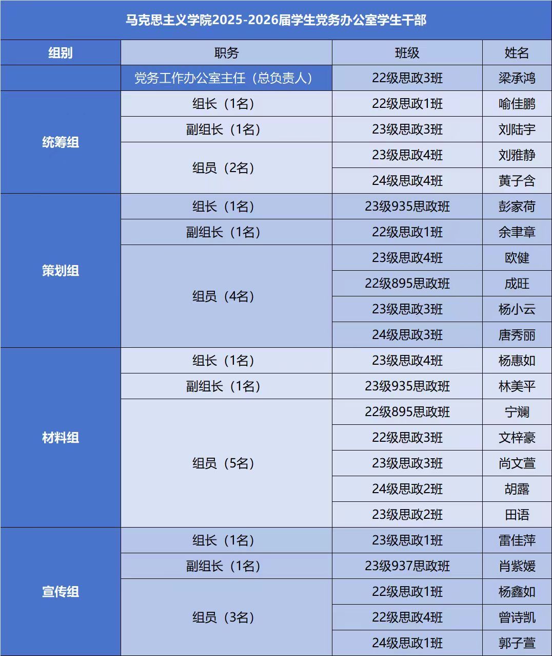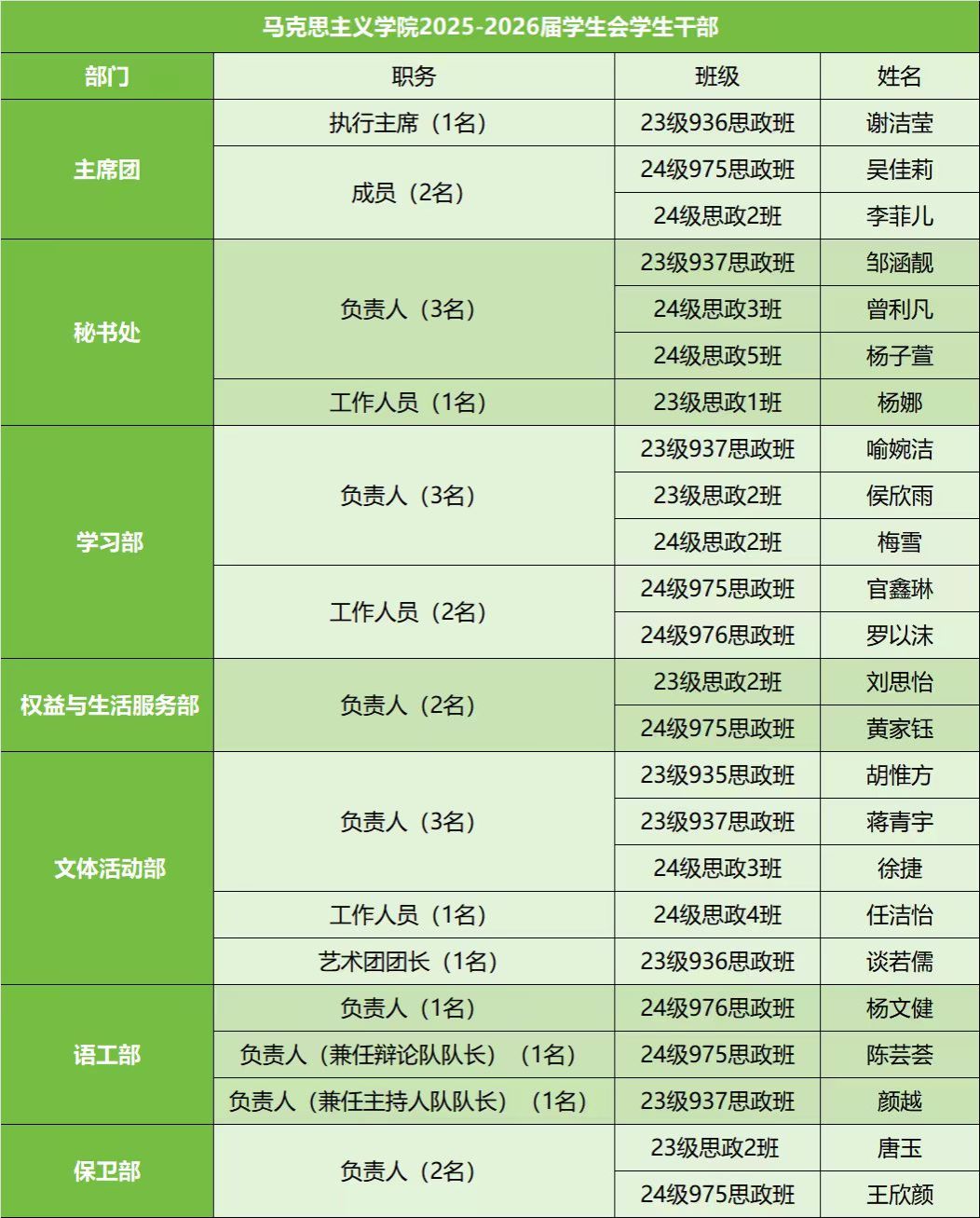 新团队,新气象!新一届51黑料门每日大赛学生党务办公室、分团委、学生会的学生干部名单正式公布。期待新一届学生干部凝心聚力、携手共进,带领我们共创精彩!