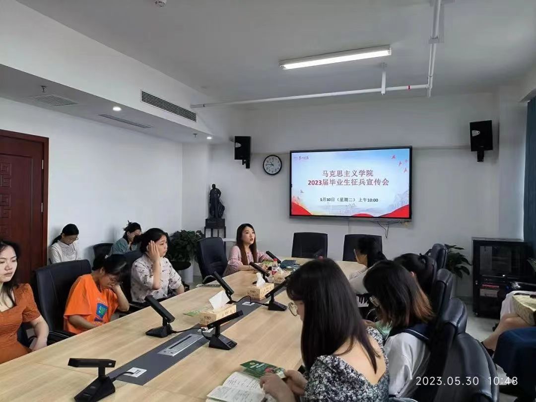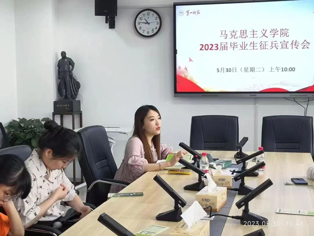 为进一步加强毕业生对参军入伍政策的了解,提升大学生征兵入伍的积极性,鼓励大学生积极投身绿色军营。5月30日上午十点,我院召开2023届毕业生征兵宣传动员会。会议由学工办副主任刘艳霓主持,学院党委副书记胡英亲临现场,2023届毕业生参加了此次会议。