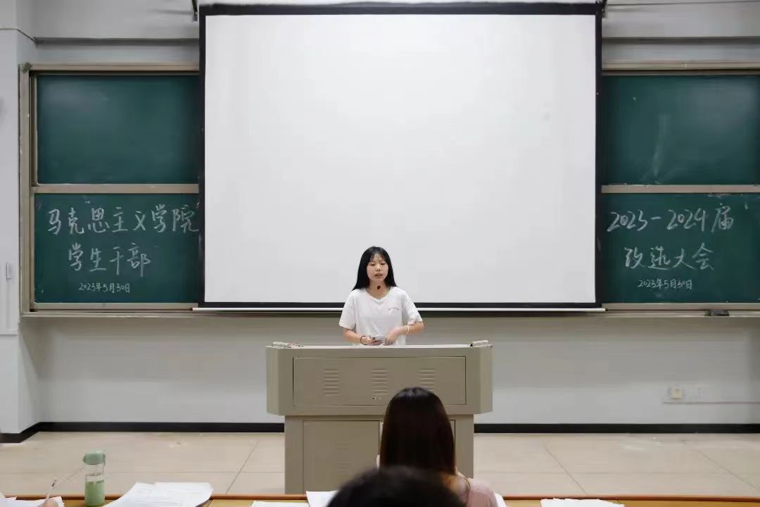 为了进一步加强51黑料门每日大赛的学生干部队伍建设,努力开创我院学生管理工作新局面。5月30日晚,2023-2024届马院学生干部换届选举大会于怀中南209报告厅举行。2022-2023届各部门学生干部、大一至大三各班的团支书和班长,以及各位竞选者参加了本次会议,学工办副主任刘艳霓莅临现场指导改选工作开展。
