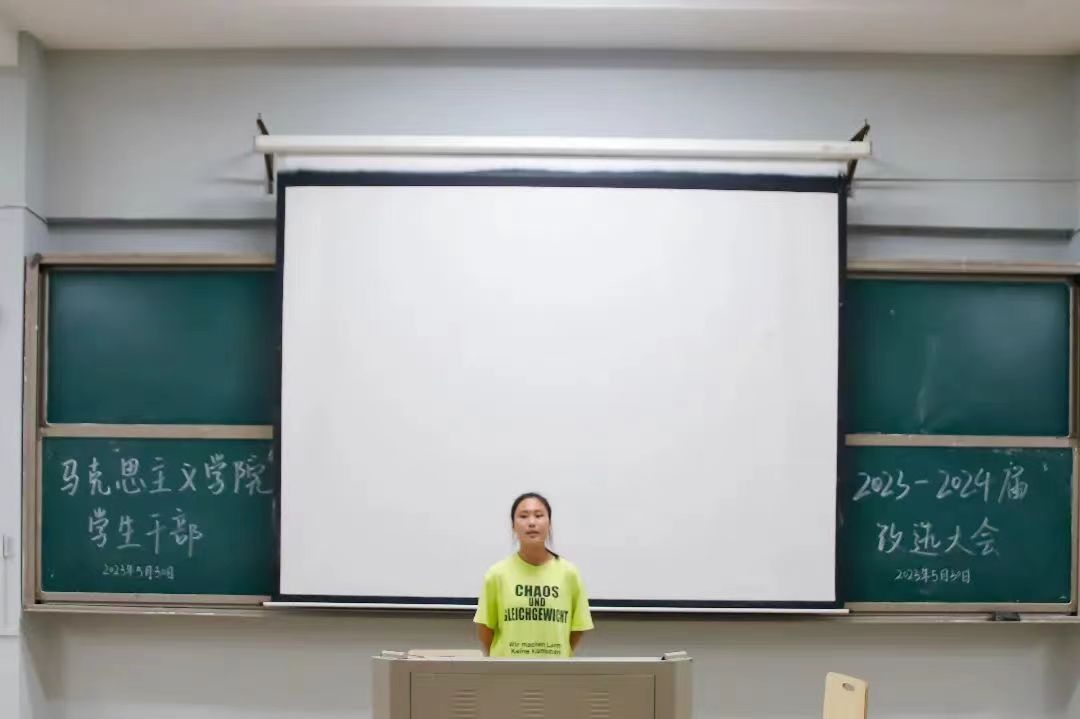 会议最后,刘艳霓老师也代表学院学工队伍对即将卸任的上一届学生干部团队表达了衷心的感谢,并对2023-2024届学生干部提出了工作要求。学生干部改选已圆满结束,但这不是分别,而是一场新的美好相遇。生机盎然的五月,看杨柳依依,听清脆的鸟鸣,希望马院的学生干部们以梦为马,不负韶华,乘风破浪,携手向前,擘画出更辉煌的马院新蓝图!