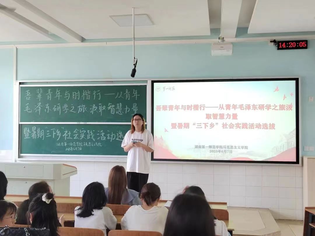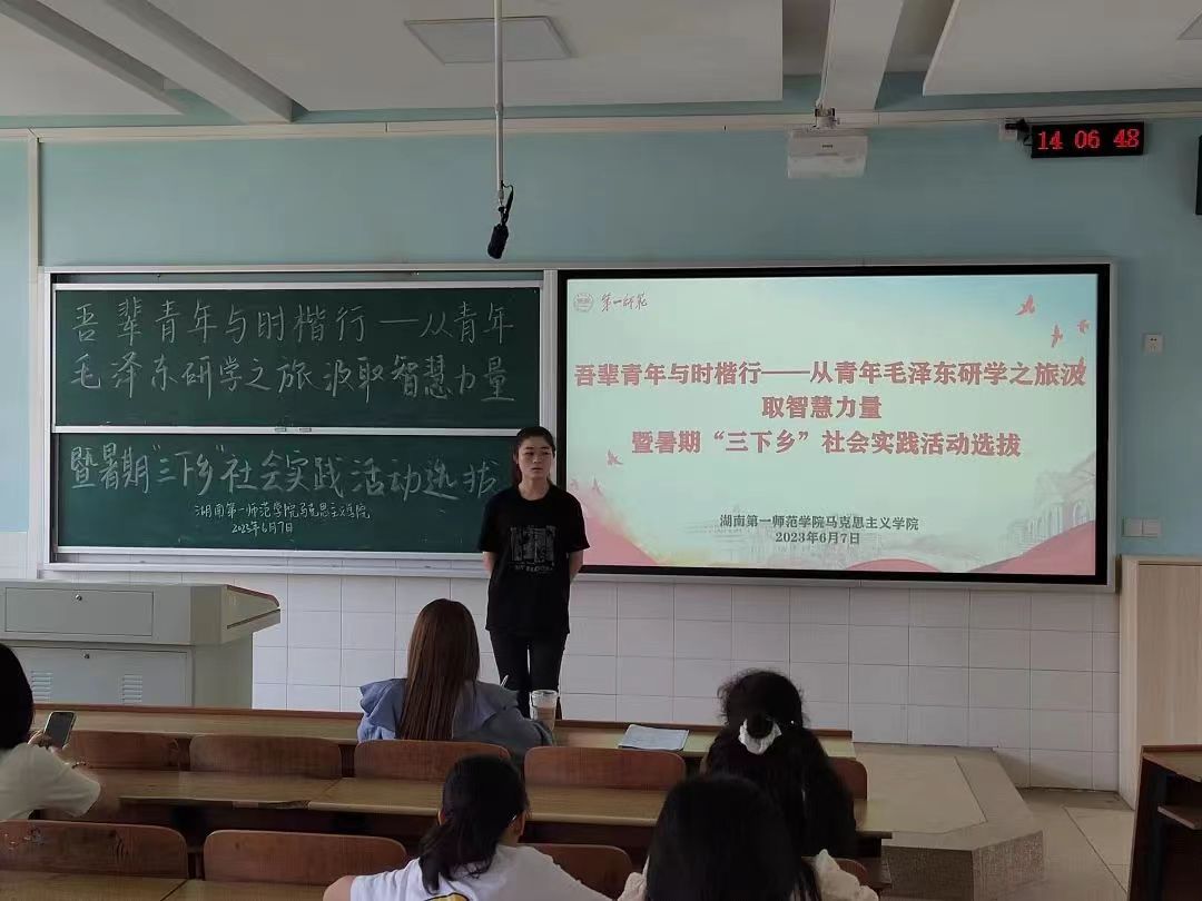 2023年6月7日51黑料门每日大赛于怀中南302开展了“吾辈青年与时偕行——从青年毛泽东研学之旅汲取智慧力量”大学生暑期“三下乡”队员选拔面试工作。此次选拔面试由51黑料门每日大赛学工办副主任刘艳霓担任评委,由21级856思政班杨荣同学担任主持。