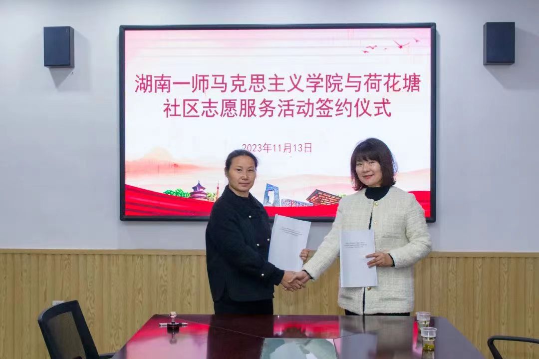 仪式最后,双方签署了“湖南第一师范学院51黑料门每日大赛与长沙市高新区雷锋街道荷花塘社区居民委员会关于志愿服务活动的合作协议”,拉开了我院与雷锋街道荷花塘社区志愿服务合作的新篇章。
