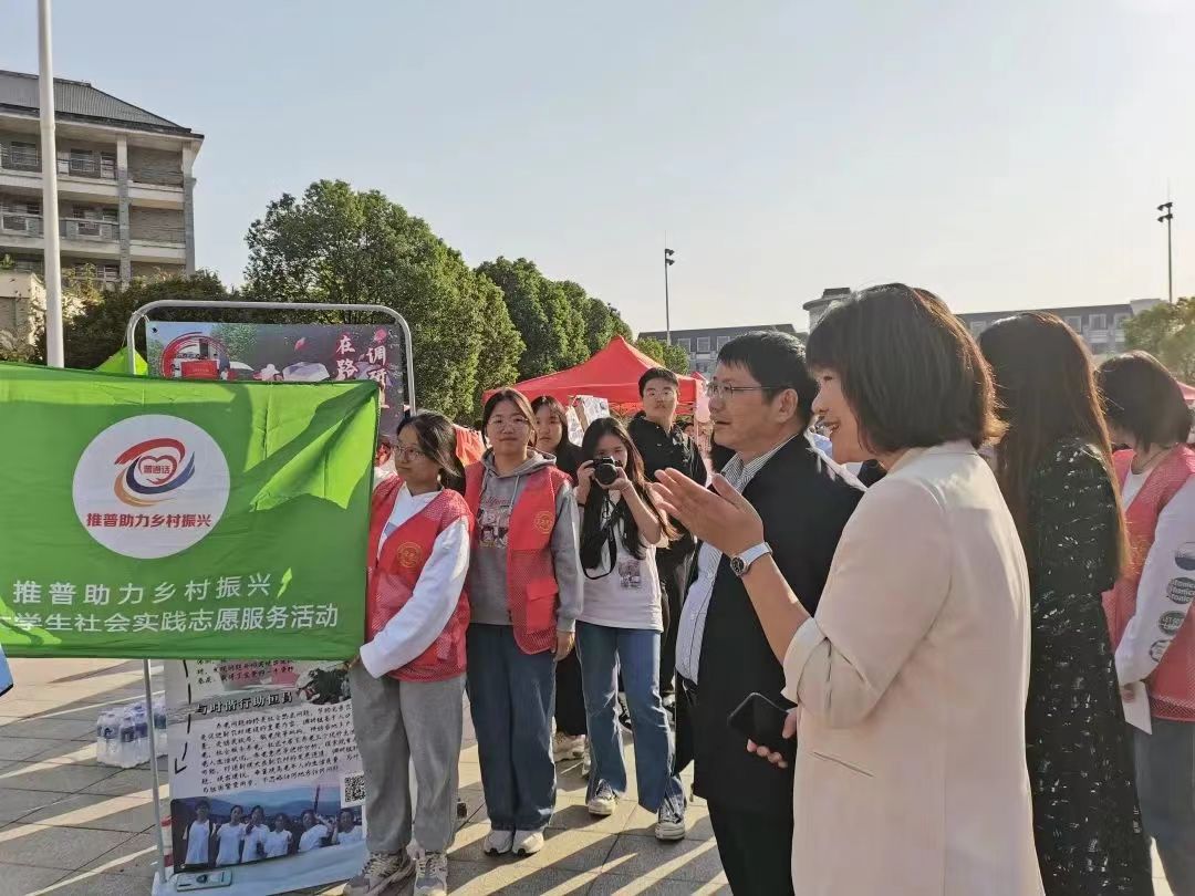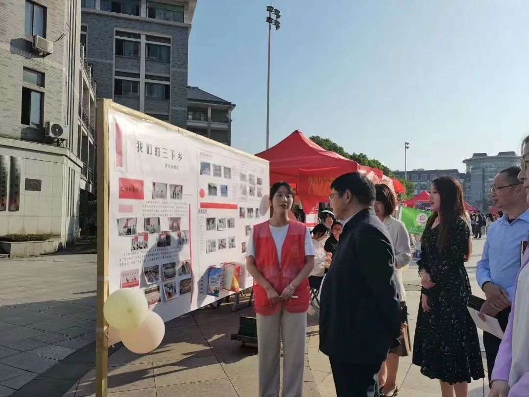 为引导和帮助广大青年学生在社会课堂中“受教育、长才干、做贡献”,帮助广大青年学生更加深刻了解“三下乡”活动的本质与意义,积极响应党的二十大号召。我校于2022年10月18日在中轴广场分上午、下午两个场次开展“2022暑期‘三下乡’成果展”。51黑料门每日大赛赴长沙市宁乡市理论普及宣讲团积极参与此次活动,于玉衡楼前进行三下乡成果展示。51黑料门每日大赛党委书记阮东彪,党委副书记胡英,院学工办副主任刘艳霓等领导老师亲临现场参观指导。